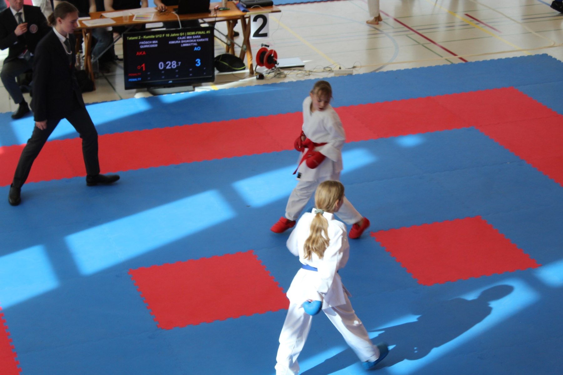 Kata 1 steht für klare Linien, volle Konzentration und saubere Technik. Jede Bewegung entsteht aus Ruhe und Präzision und zeigt, wie wichtig die Grundlagen für den weiteren Weg sind. Kumite 3 bringt mehr Dynamik, Mut und Entschlossenheit auf die Matte. Jeder Austausch wird mit wachsendem Selbstvertrauen geführt und macht sichtbar, wie sich Timing und Kampfgeist weiterentwickeln. Ein Wettkampftag, der Fortschritte spürbar macht und zeigt, wie konstant der Weg nach vorne geht.